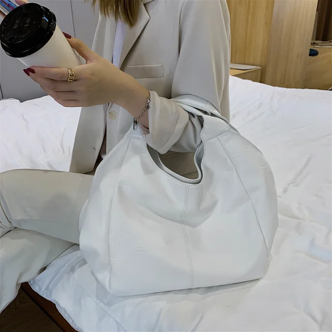 Сумка-хобо — это бескаркасное изделие из мягкого материала в форме полумесяца, которое очень похоже на небольшой мешок с ручками. У модели две короткие ручки и одна длинная — её можно отрегулировать или снять.