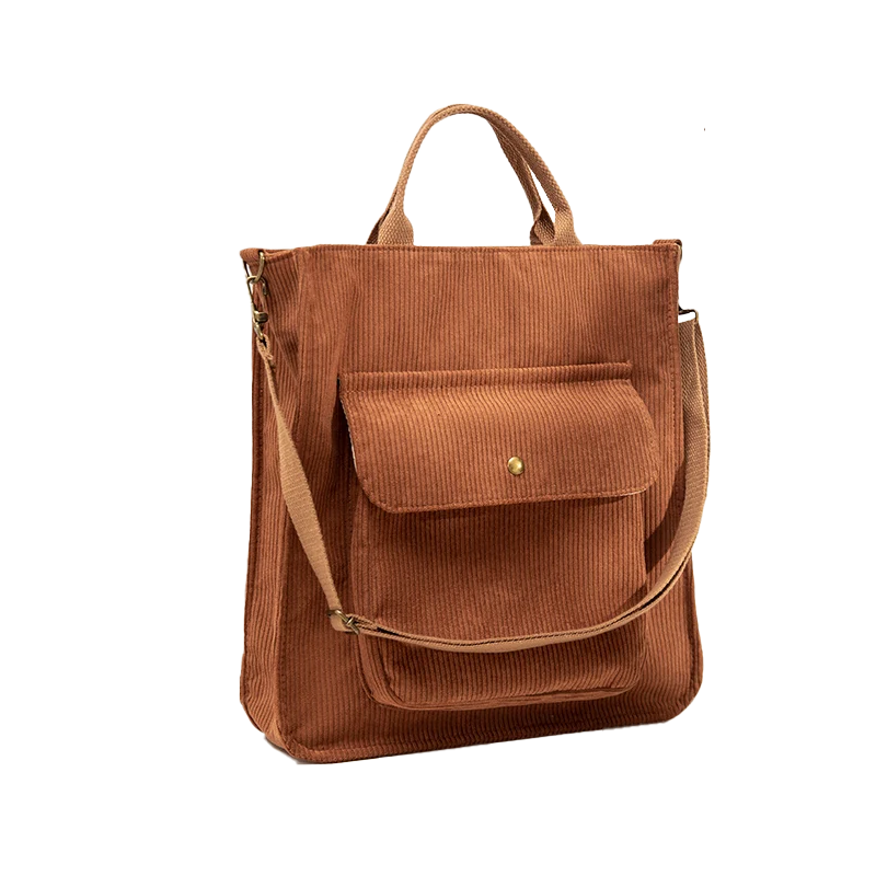 У этой сумки две короткие ручки и одна длинная (её можно снимать и регулировать). Есть прорезной кармашек на молнии для документов и карточек. На внешней части вам наверняка понравится накладной карман на кнопке — в него удобно быстро убирать телефон или проездной.