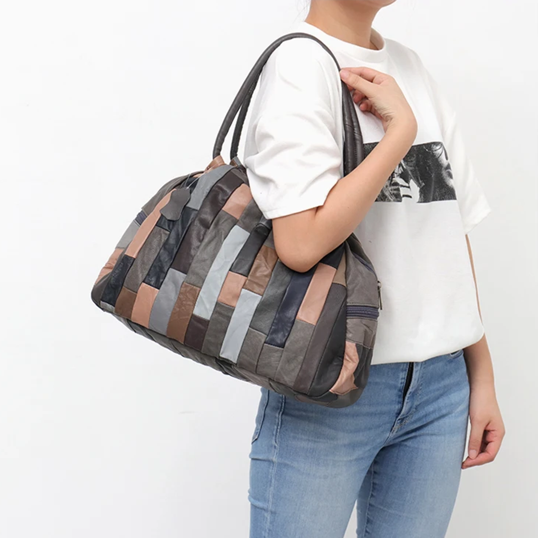 Модель с двумя широкими ручками и одним длинным регулируемым ремешком, который можно отстегнуть. Внутри карман-перегородка на молнии и ещё три небольших кармашка. Такая сумка через плечо идеально подходит для долгих прогулок и поездок за город — по пути с дачи вы точно сможете захватить вкусностей домой.