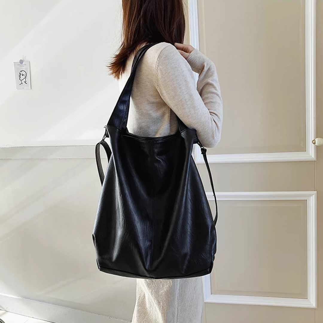 С такой удобно ходить на работу (в неё поместится телефон, планшет и ноутбук), ездить на тренировки и путешествовать. Кроме того, к ней подойдёт достаточно разношёрстная одежда — от строгих платьев с цветными колготками до спортивных штанов с тонкими лонгсливами.