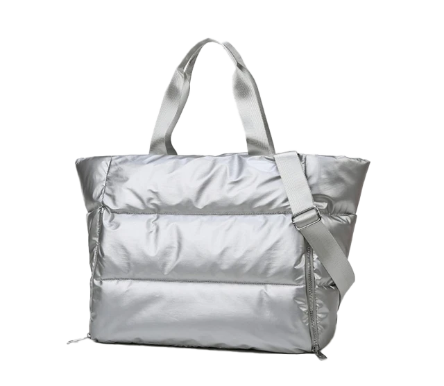 У модели две короткие ручки и одна длинная. Внутри — большое отделение на молнии, прорезной карман на замочке и два открытых накладных кармашка. Снаружи — сквозной отсек, в котором можно закрепить коврик для йоги.