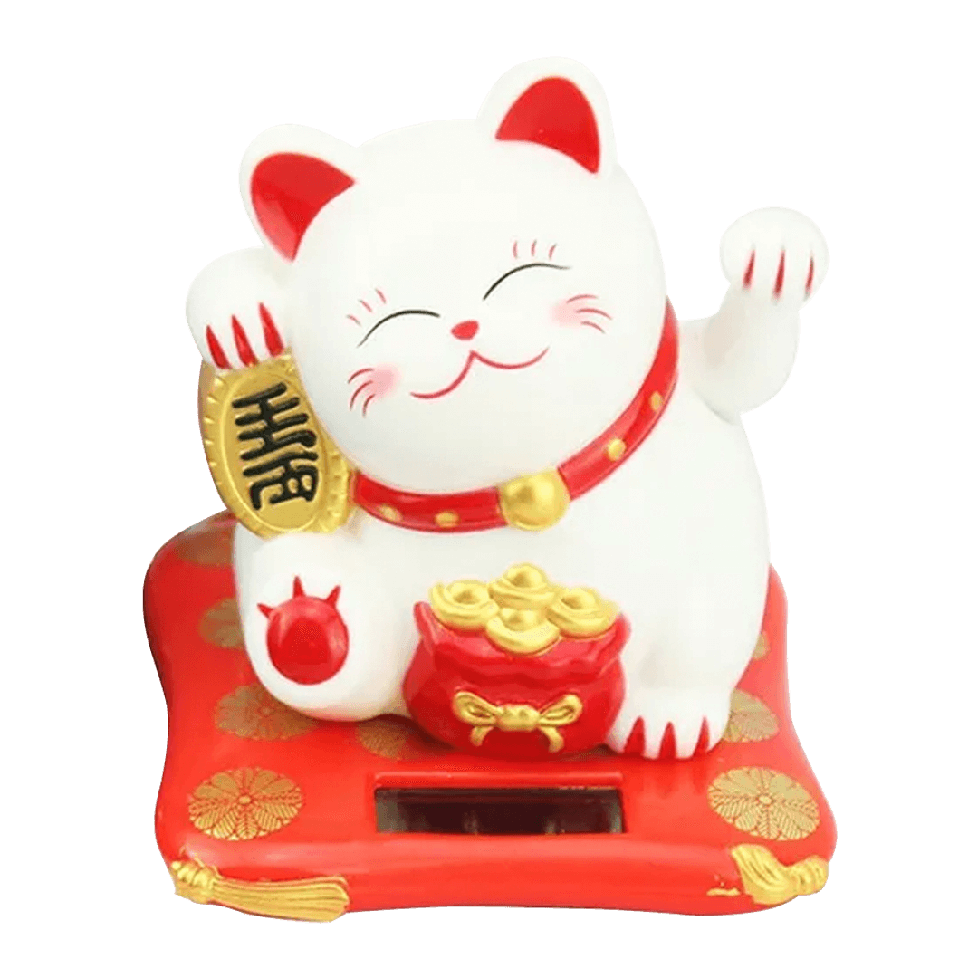 Такие фигурки завезли из Японии, где их называют манэки-нэко, что буквально означает «манящий кот». Животное изображают с поднятой лапкой, которой оно приманивает богатство и процветание. Левая сулит удачу и деньги, а правая — больше клиентов. Поэтому зазывающих котиков так часто можно встретить в магазинах, отелях и ресторанах.