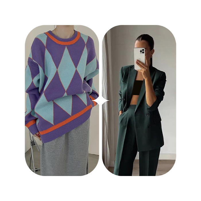 Если удобные тапочки ещё реально принести из дома, то большое пуховое одеяло точно не получится. Но есть альтернатива: мягкие и уютные костюмы. В офисе будет комфортно. А чтобы добавить стиля в образ, как всегда играемся с аксессуарами.