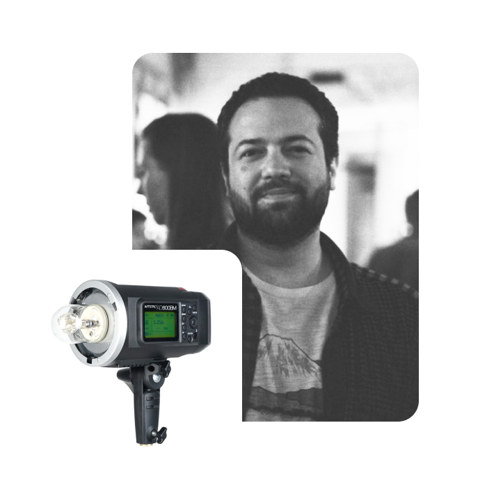 Как и со стойками, у меня есть несколько студийных осветителей, которым около десяти лет, и они потихоньку теряют свои полезные качества. Поэтому начал смотреть в сторону нового света, но с небольшим апгрейдом — аккумулятором. Это позволит избавиться от зависимости от проводов и розеток, а также снимать на улице, например. Я выбрал комплект с фирменным синхронизатором, через который можно менять настройки моноблока дистанционно, что очень удобно, если помещение большое или свет стоит очень высоко. В линейке этих осветителей это одна из старших моделей по мощности, с ней можно снимать даже в ясную погоду против солнца.