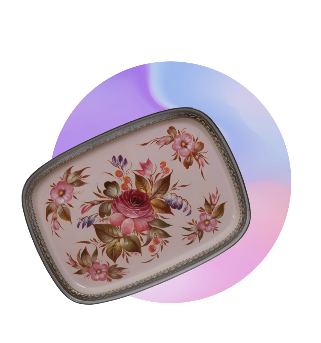 Совет: Металлические подносы с цветочными орнаментом подойдут не только для кухонного пространства, но и для спальни и даже ванной комнаты. Используйте их как декоративную подставку под украшения, маленькие косметические вещи или большие свечи. Сочетать подносы с изображением цветочных композиций можно с однотонными материалами, клетчатыми, полосатыми и другими геометрическими орнаментами.