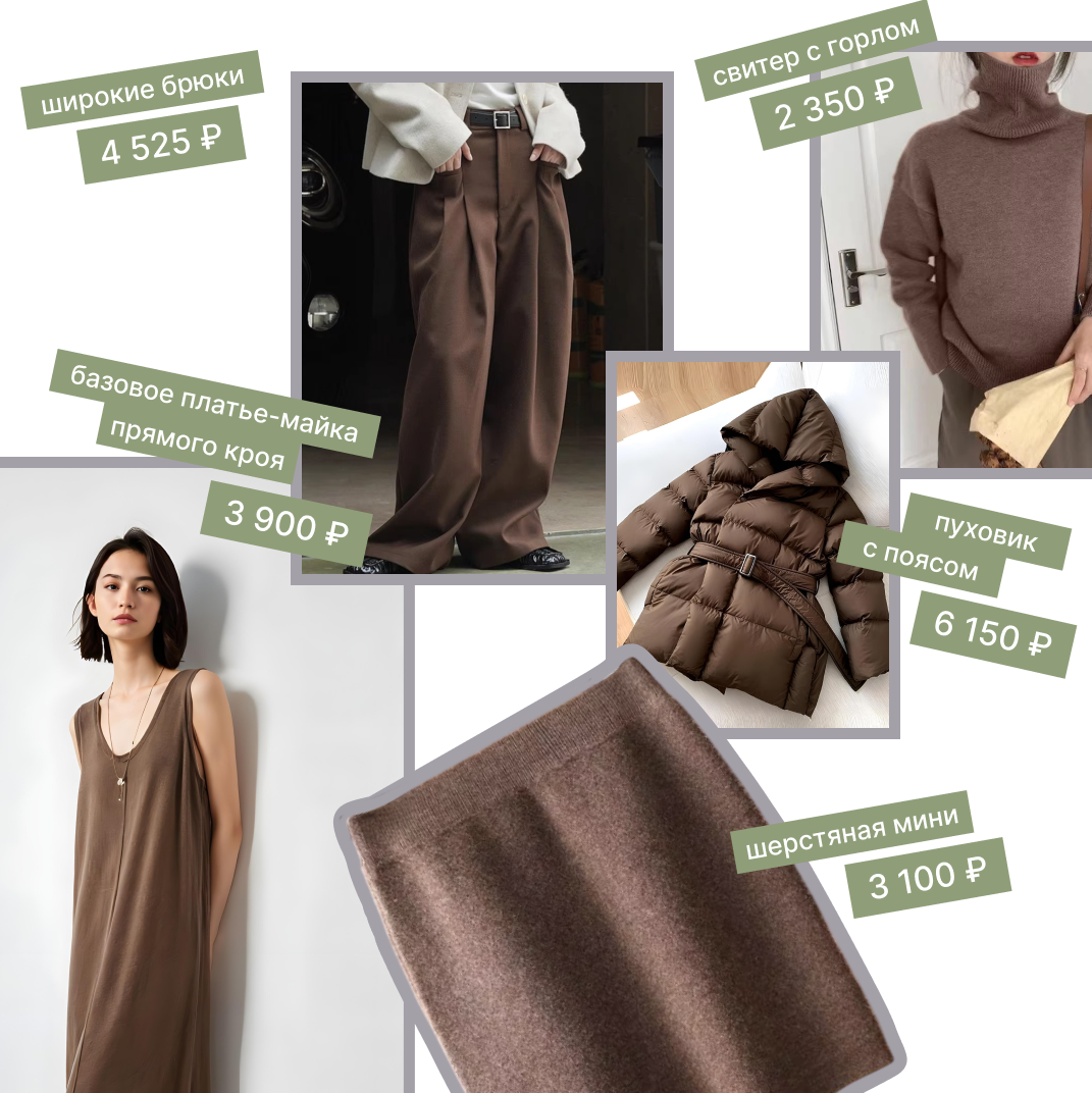 Тот редкий случай, когда цвет подходит всем. И что особенно примечательно — в отличие от светло-бежевого, он более практичный для осени и зимы и при этом так освежает. Вещи в таком шоколадном оттенке будут отличным холстом для создания визуально дорогого образа — они прекрасно сочетаются с одеждой в похожих тонах, а также серым, бордовым, чёрным и оливковым.