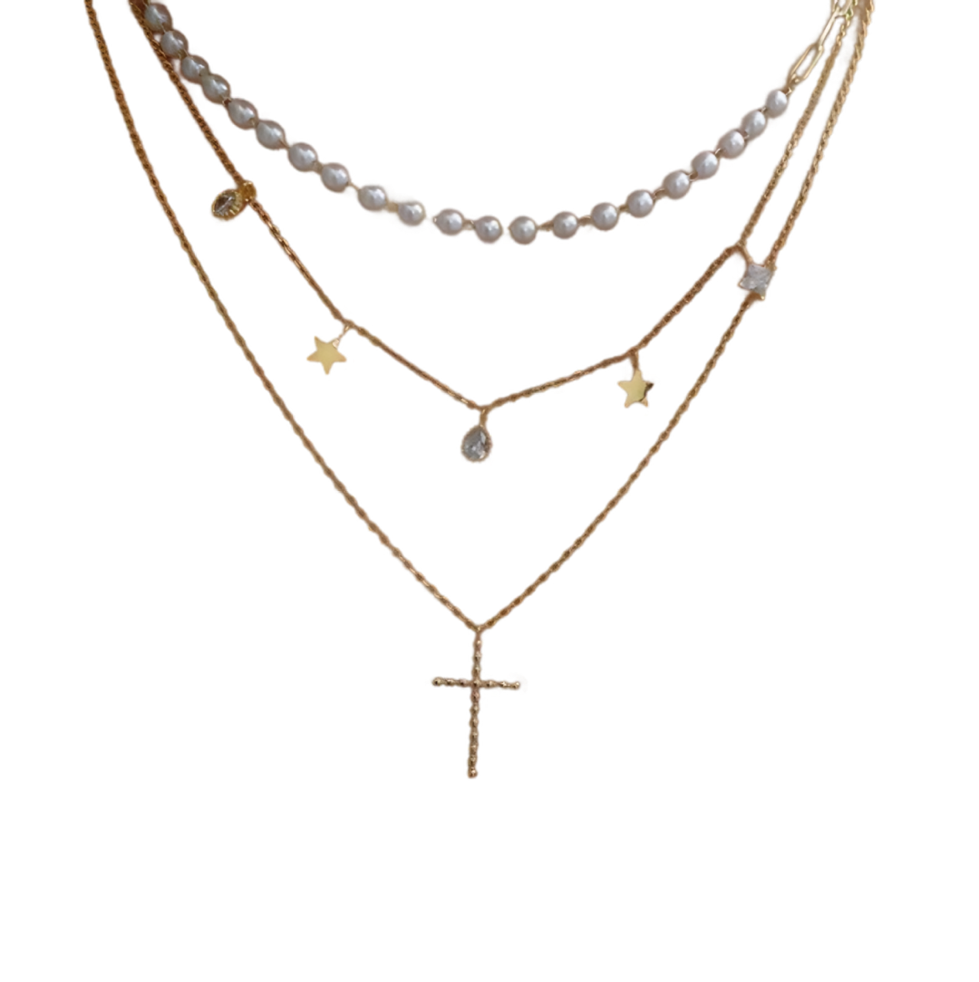 Многослойное колье весной и летом 2024 года может быть любым: в виде наслоения нескольких бус разной длины, цепочек разной ширины или жемчужных нитей. Миксовать можно золото и серебро, жемчуг и драгоценные камни. Носим на простые майки-алкоголички и с шифоновыми платьями в круизном стиле.