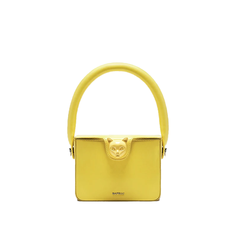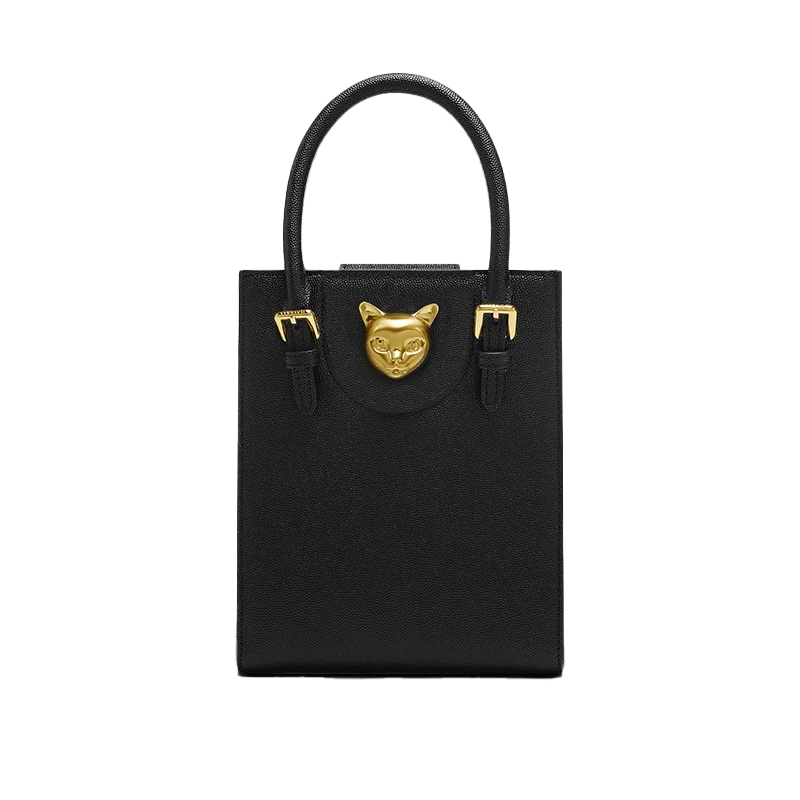 Продолжим историю с сумками. Бренд тот же, но теперь сумка из разряда базы — чёрная прямоугольная модель, тоже с короткими ручками и неизменной мордочкой коти. Кстати, такие ручки сейчас максимально в тренде. Носите с вечерними и повседневными образами, сумочка классно смотрится на фоне объёмных пиджаков.