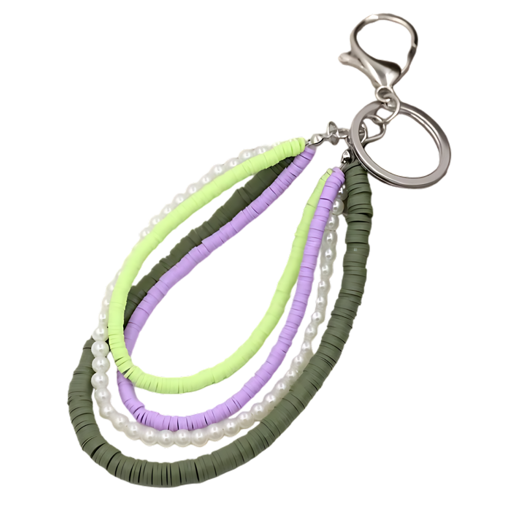 Это уже прямо-таки специальный брелок на сумку c карабином. Прицепите на модель в пастельных тонах. Можно дополнить мини-крабиком и длинной жемчужной ниткой, которую просто хаотично повязывают узлом.