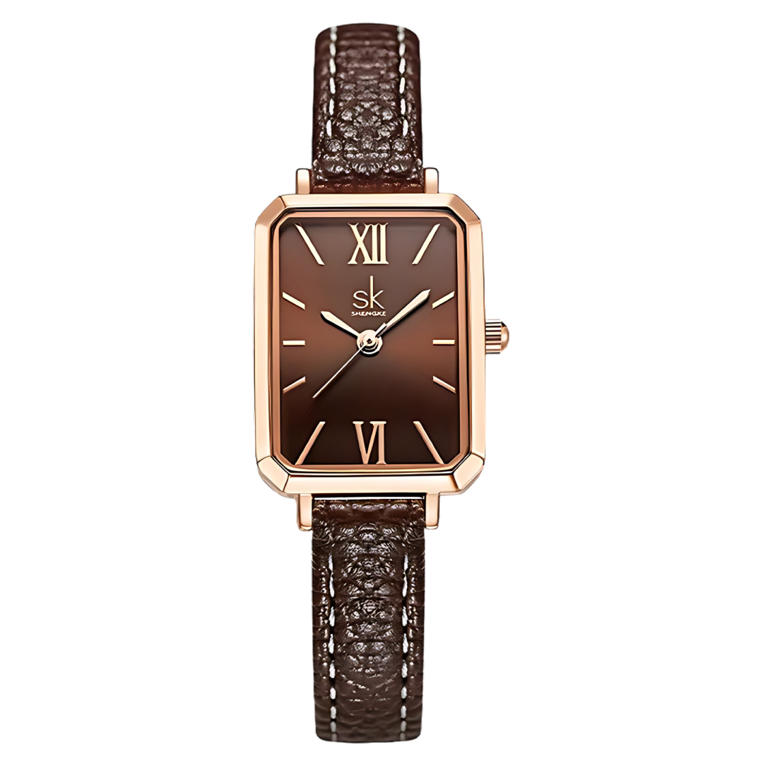 Ещё один хит 2024 года — женские часы в винтажном стиле. Такие модели обычно выполнены в тёплых оттенках с эффектом состаривания. Ремешок из кожи с контрастной прострочкой, а на циферблате чаще всего есть римские цифры. В сочетании со спортшиком смотрятся интересно — не забудьте в компанию вельветовую бейсболку.