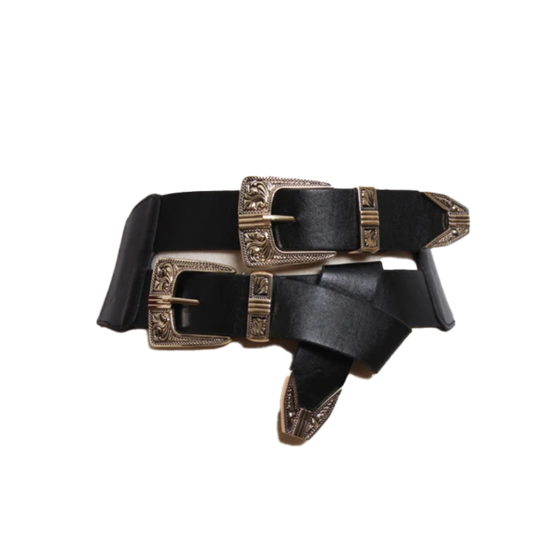 Классный приём этого сезона — когда в одном образе используется два, три и даже четыре ремня одновременно. Чтобы наряд получился гармоничным, лучше объединять одинаковые или очень похожие пояса. Мы нашли вообще готовый двойной, даже думать не надо :) Надели бы его на экстремально оверсайзный лонгслив или рубашку с мужского плеча.