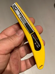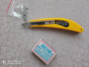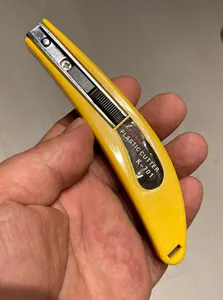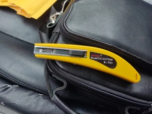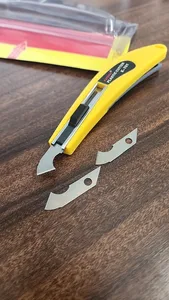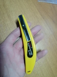 товар хорошего качества, в комплекте три лезвия. очень компактный. пробовал в работе резал поликарбонат 3 мм, рез 1500 мм, не понравилось, лезвие слишком тонкое уводит, вернулся к самодельного из ножовочного полотна.