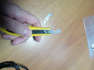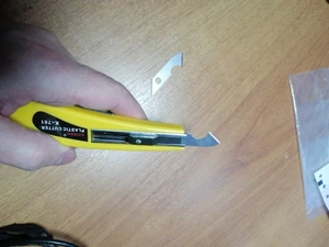 Брал под резку заготовок для печатных плат. Пока попробовал гетинакс 1,5 мм. Нормально режет. Быстро и ровно. Главное аккуратненько проскрести фольгирование, мягко, без лишнего нажима, лезвие и так успешно процарапывает медь. А дальше по гетинаксу «как по маслу» идёт. Я думаю, что стеклотекстолит чуть тяжелее и дольше, но тоже нормально прорежет. Лезвия на фольге, понятное дело, будут быстро тупиться. Доставили супербыстро, дней за 8-9 (доплатил за нормальную доставку). Качество ножа для этой цены нормальное. Есть мелкие огрехи вроде облоя на работу ножа совершенно не влияющие. Все 3 лезвия наличествуют в комплекте.