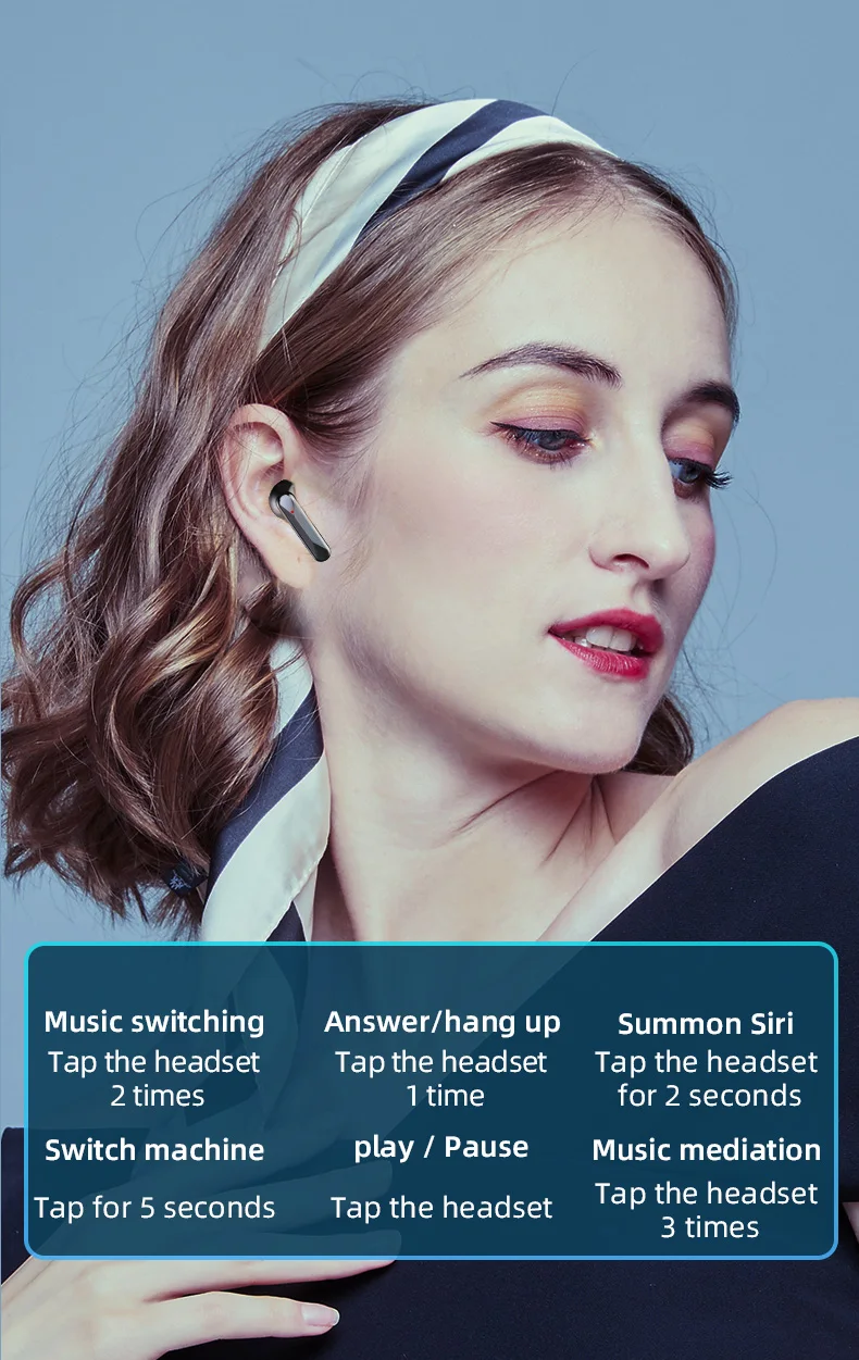 Product function: play pause (tap left/right ear 1 time),answer and hang up (tap Click on the left/right ear),