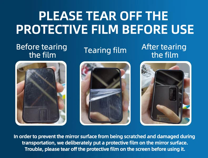 transportation, we deliberately put a protective film on the mirror surface.