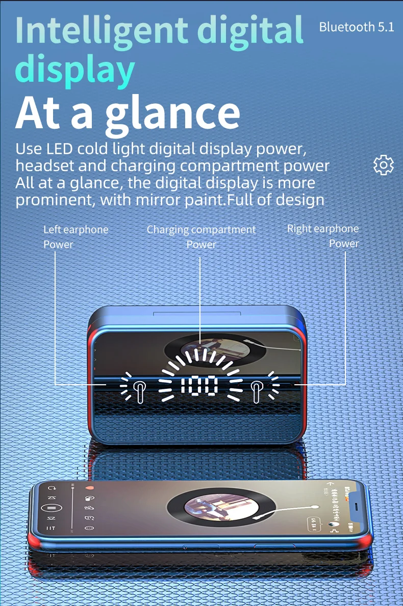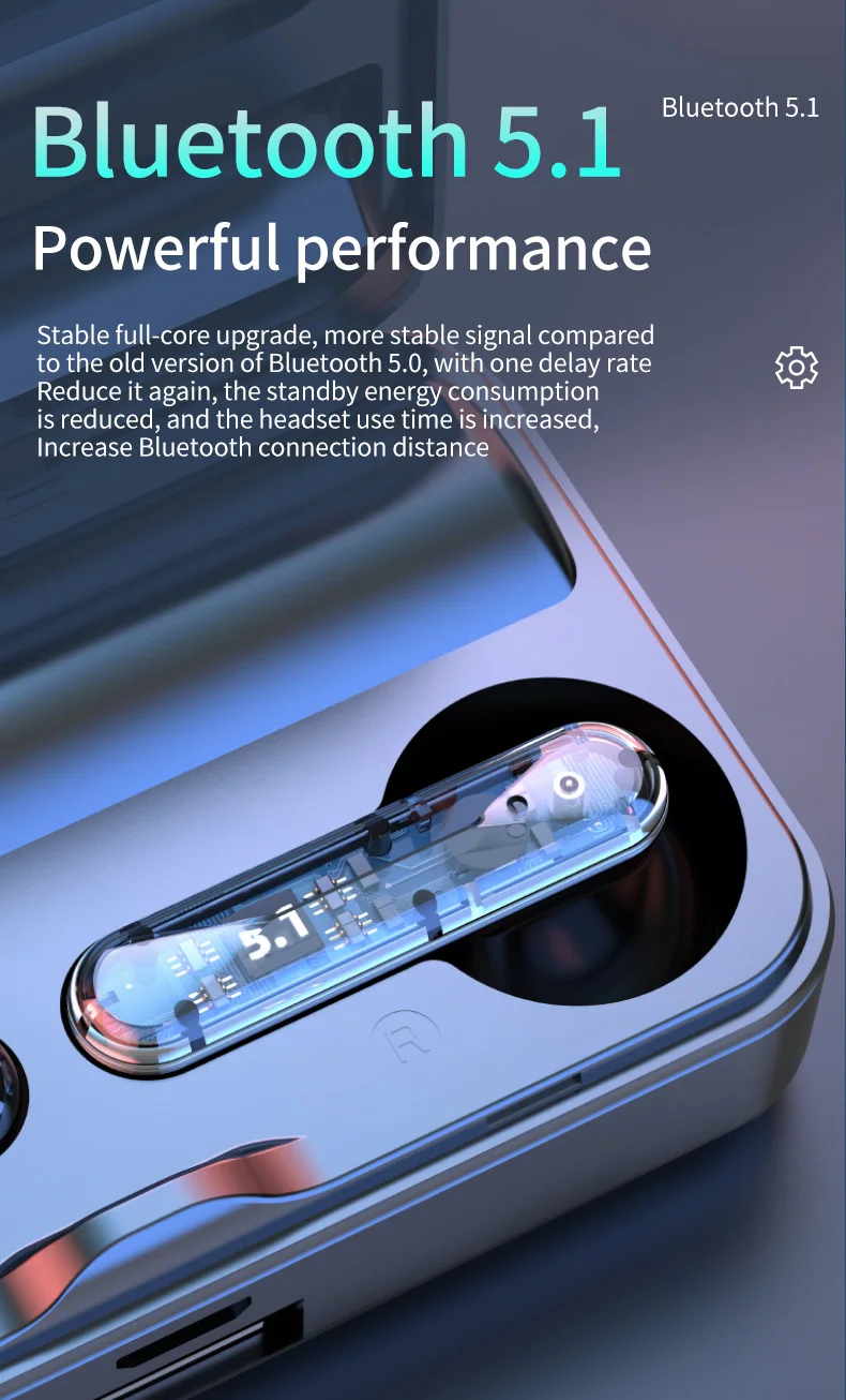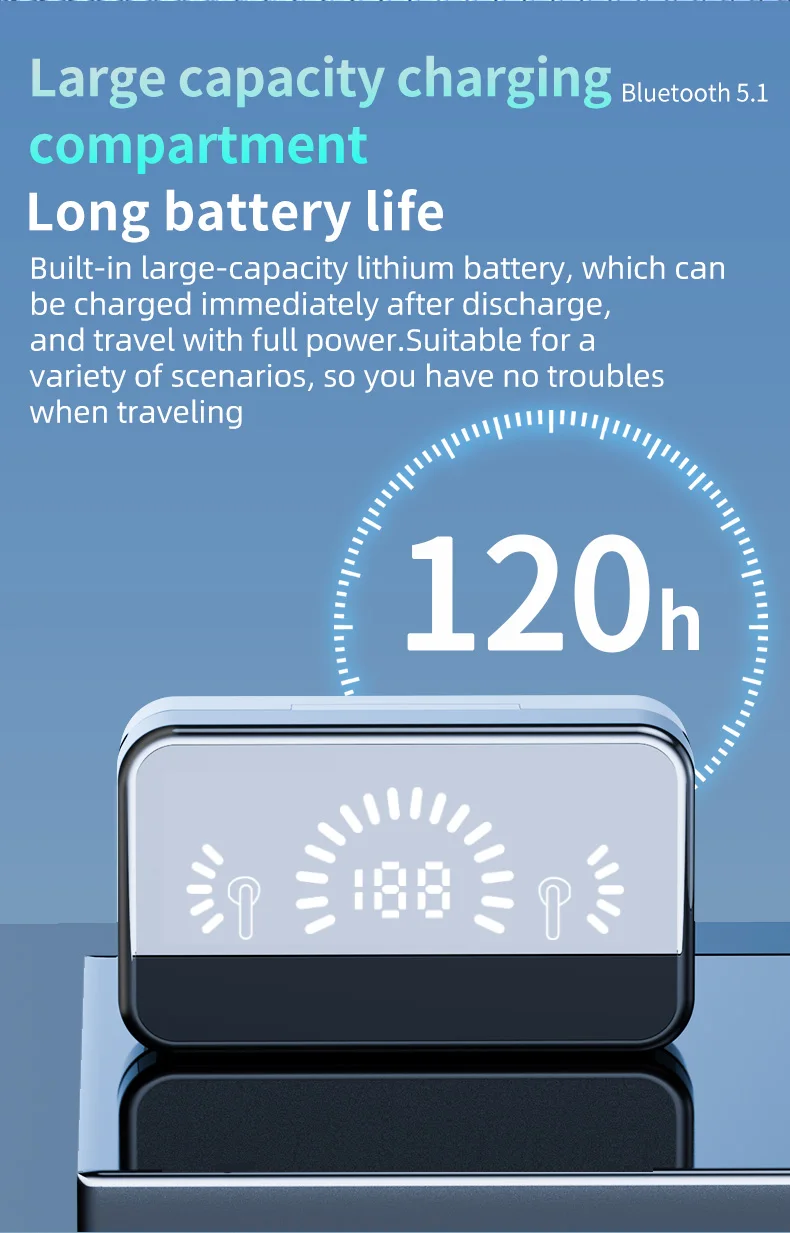 Large capacity charging Bluetooth 5.1compartment Long battery life