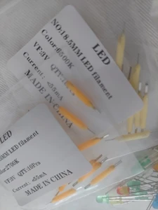 3V29mm-2700K 10 шт. Идеально… после покупки короткого плюс, я взял их, чтобы воспроизвести в Хо неоновые огни м длиной (в масштабе, это было бы 18 мм… желтое тело из них составляет 20 мм, но не светится из конца в конец = идеально, имитируя опоры на концах). Соединительные наконечники имеют длину 4,5 мм с обеих сторон и штангу + и имеют небольшое отверстие для их распознавания.