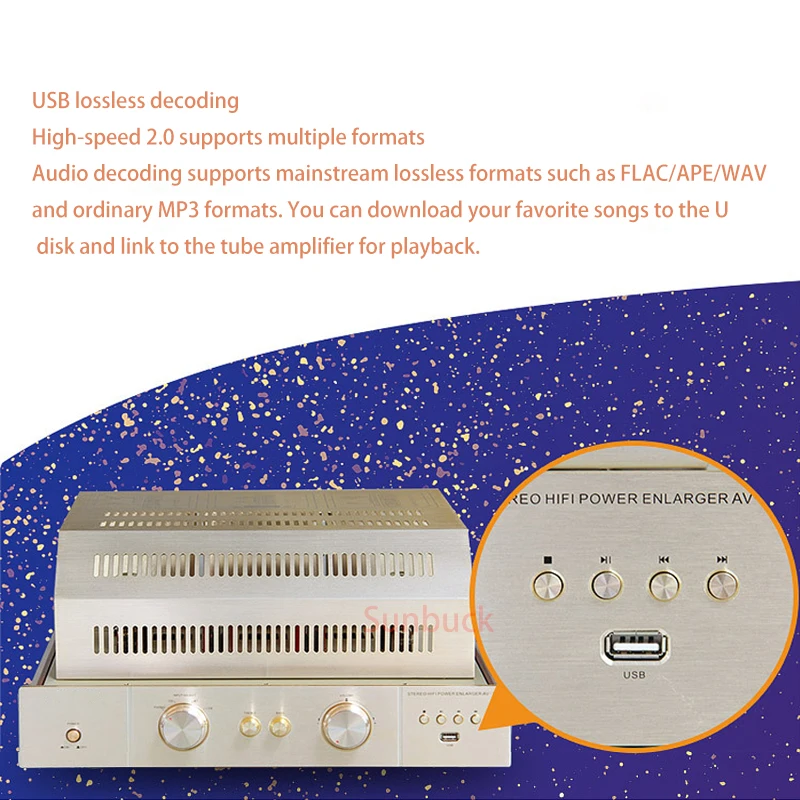 Sunbuck 200+200w 2.0 мощный Bluetooth USB декодирование без потерь hifi 6U1 6F2 5Z2P ламповый цифровой усилитель звука аудио