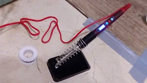 Очень хороший набор с паяльником. Включил первый раз на 20 минут, все прошло хорошо. Ручка не нагревается, в руке держать удобно, качество паяльника на высоком уровне. После отключения поменял жало на другое и снова включил. Разогрел до 350 градусов, сделал припой и снова отключил. Работает отлично. Единственно, на мой взгляд немного долго плавит олово при тех же 350 градусах. Поскольку паяльник новый, поэтому пока непонятно. Буду ещё много раз паять и использовать его, дополню отзыв. Пока мне он нравится. Выставляешь нужную температуру и он нагревается до этой температуры. Приятно радует и то, что есть сумка-чехол для паяльника. Очень удобно. Только ради этого и брал. Отличный набор. Жёлтого цвета инструмент для снятия изоляции мне совсем не понравился. Пытался снять изоляцию с двух разных проводов и ничего не получилось. Лучше купить отдельно большие многофункциональные щипцы для этих целей. Лично я паяльником очень доволен. Буду надеяться что он проработает много лет. Продавца и товар однозначно рекомендую!
