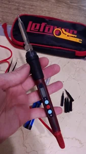 Доставка быстрая, в течении недели. Сам паяльник в эту цену вроде ничего, пару раз пока только испытал, все прошло успешно. Температура регулируется в руке сидит удобно, как будет дальше покажет время. Я брал комплект с сумкой, чтобы все было в одном месте, удобно хранить. Конечно все остальное что идёт с паяльником в комплекте очень низкого качества и прям видно что эконом и для галочки. Тестер, плохой принт и слабо видны надписи, плюс нет батареи, пришлось топать в магазин, батарею поставил, работает. Запасные жала это боль, мало того что с браком парочка, плюс внутри ржавые (надеюсь на фото видно). Я бы рекомендовал максимум брать паяльник, остальное пустая трата денег.