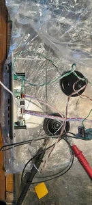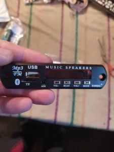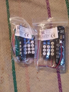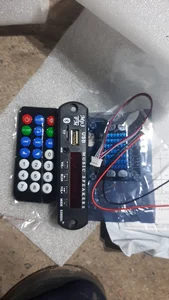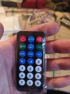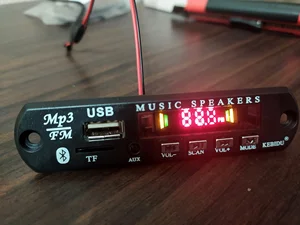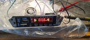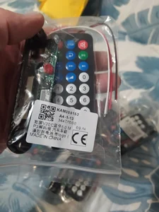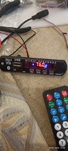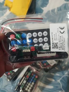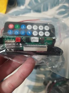 Подключил питание. работает. есть пульт , без батарейки. Режимы переключает. осталось только подключить динамики.